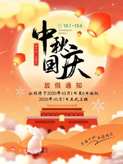 We will take our National Holiday and Mid-autumn Festival from Oct 1~6,2020.